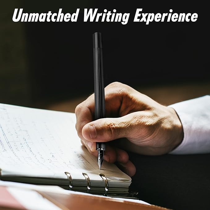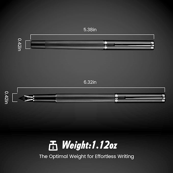- Appearance & Quality: This refillable fountain pen has an exquisite metal body with a matte black finish. It is well made, sturdy and durable. Perfect metal weight and balance for premium feel in your hand.