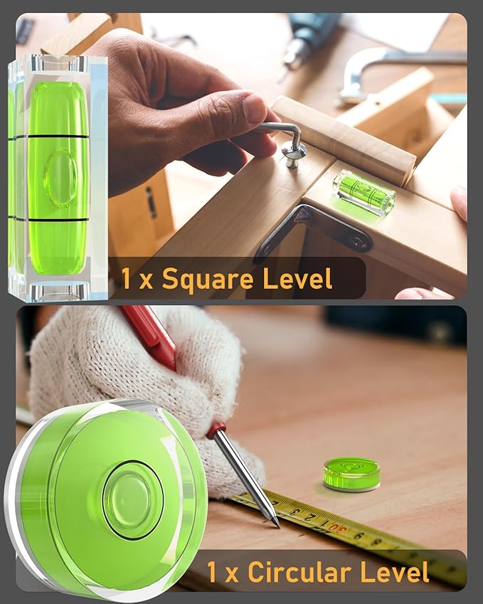 - MULTI-USE CARPENTER TOOLS FOR VARIOUS APPLICATIONS: This carpenter pencil set includes a carbide scribe tool and a positioning center punch, perfect for precise engraving on tough surfaces such as metal, tile, glass, ceramics, and wood. Additionally, we include a square level and a round level for use in different scenarios. Paired with a 4B eraser for easy error correction, this set is ideal for fine work