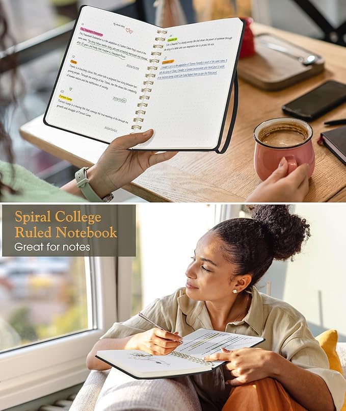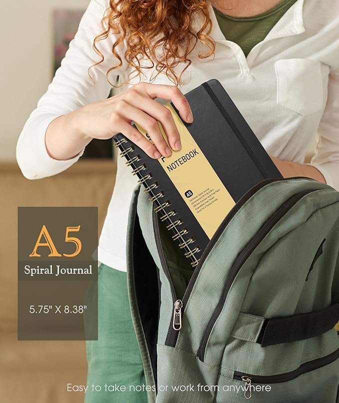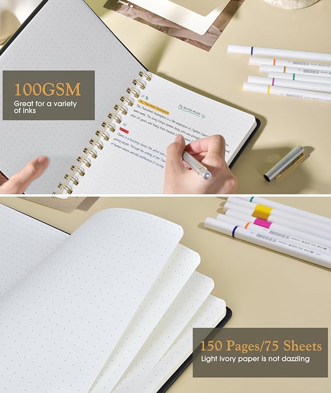 Dotted Spiral Journal Notebook, A5 Hardcover Spiral Journals for Women Men, 100 GSM Dot Grid Paper Notebooks, 150 Pages Spiral Bullet Dotted Notebook for Writing Note Taking 5.75" x 8.38" Black