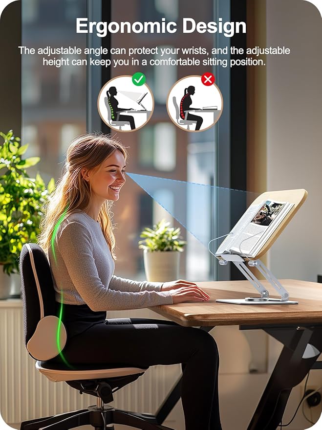 Book Stand for Reading, 360° Adjustable Book Holder, Foldable Book Holder Stand, Cookbook Stand, Textbook Stand, Bible Stand, Hands Rree Book Stand, Laptop Stand, Tablet Stand