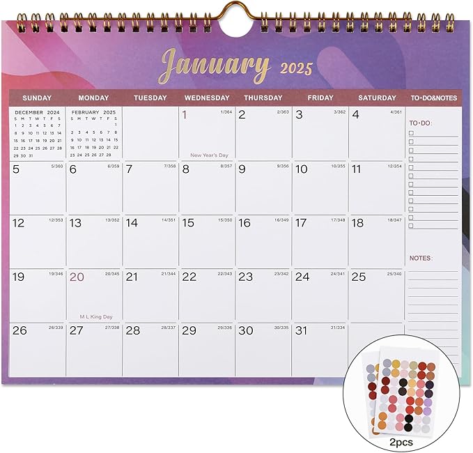 - MONTHLY OVERVIEW: With 18 months pages featuring 6 different color schemes, this 2025-2026 calendar's monthly overview page includes past and future monthly references, highlighted federal holidays that help remind you of important holidays and manage your life efficiently. And the grid includes Julian dates for long-term planning.