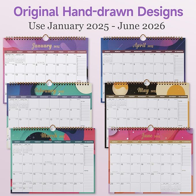 - MORE PRODUCTIVE: This 2025-2026 wall calendar is designed to simplify your life. 2025-2026 Wall Calendar Includes January 2025 to June 2026, the convenient and effective month view page planner will help you clearly organize each month of the year. Perfect for keeping track of your daily tasks, goals and yearly plans.