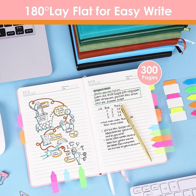 - Lay-Flat Design:Lay Flat design makes writing and reading easier. Also the hardcover notebook is designed with an elastic closure band to make it close tightly and protect the content.