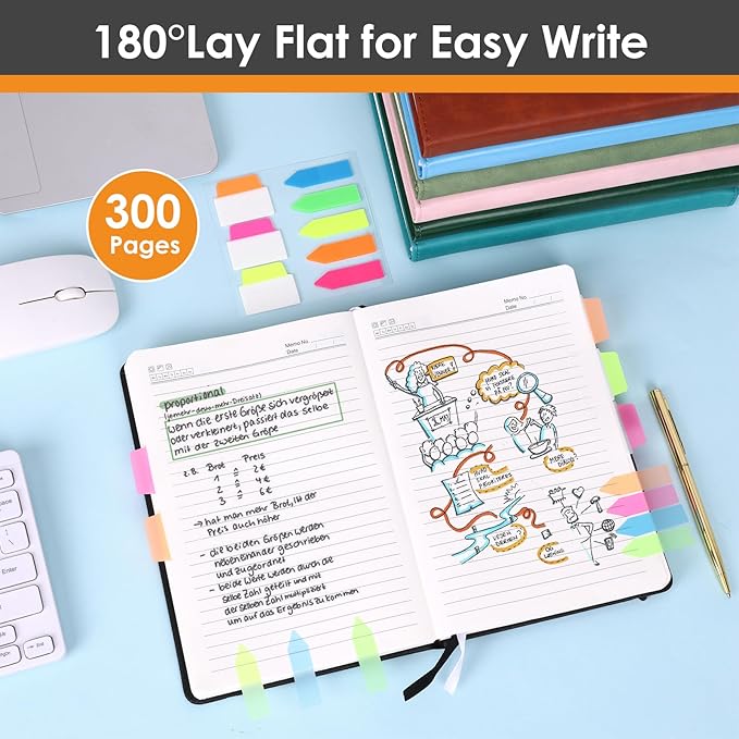 - Lay-Flat Design:Lay Flat design makes writing and reading easier. Also the hardcover notebook is designed with an elastic closure band to make it close tightly and protect the content.