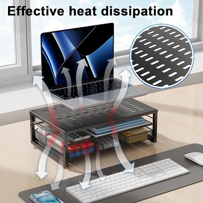 - 【Powerful and stable】: The monitor riser is designed with ventilated heavy steel plates and steel legs, which has a very large load-bearing capacity and effectively prevents equipment from overheating. Non-slip rubber pads provide stability during work.