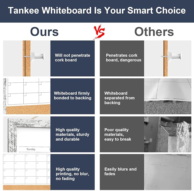 - QUALITY CALENDAR WHITEBOARD - This dry erase board is made of high quality materials, the wooden frame is sturdy, easy to write and erase, the lines won't fade, and is designed for long-term use.