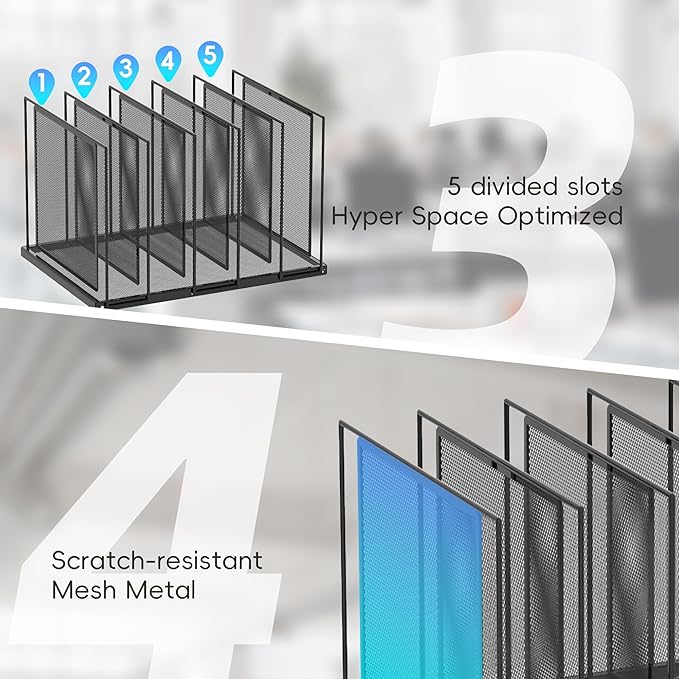 - [High Quality & Durability] Made of stronger, thicker mesh steel, this vertical file organizer provides support and stability while the high-quality powder coat helps resist chipping or scratching.