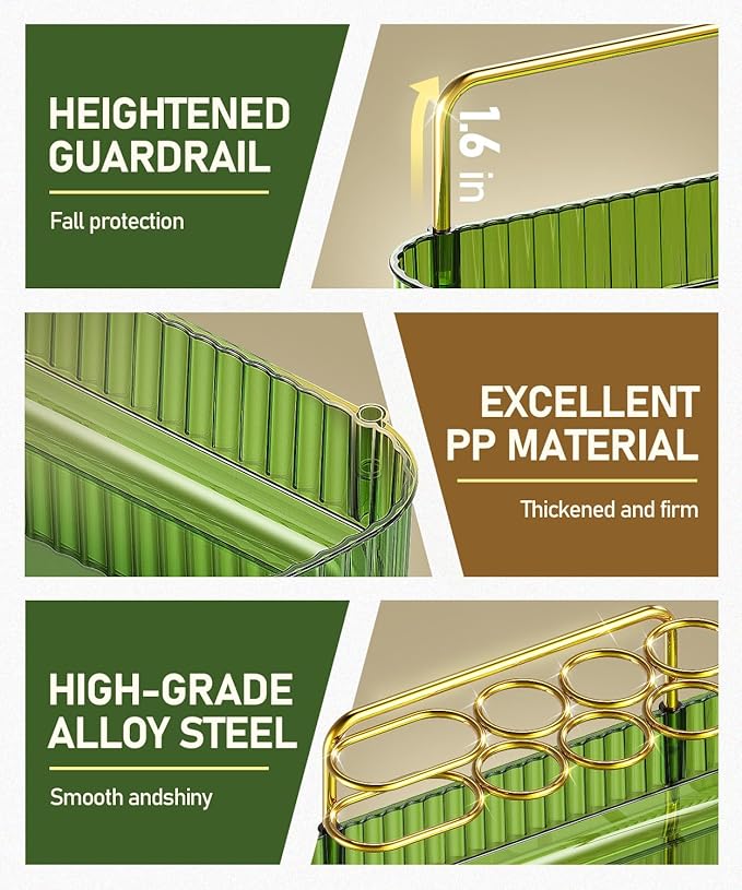 2-Tier Corner Bathroom Counter Organizer Makeup Cosmetic Storage, Tool-Free Installation Acrylic Vanity Shelf, Skin Care Organizer Perfume Tray for Countertop Bathroom, Dresser, Kitchen (Green)