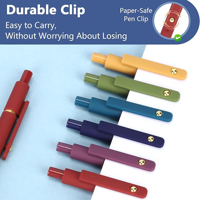 - DURABLE PEN CLIP:These pen clips can firmly clip the ballpoint pen to a book, notebook, or bag, easy to carry, without worrying about losing. Retractable design: gently press the cap, and the pen end automatically retracts.Note: After using the gel pen, it is suggested to lay the pen flat or the nib face up. This helps protect the pen tip