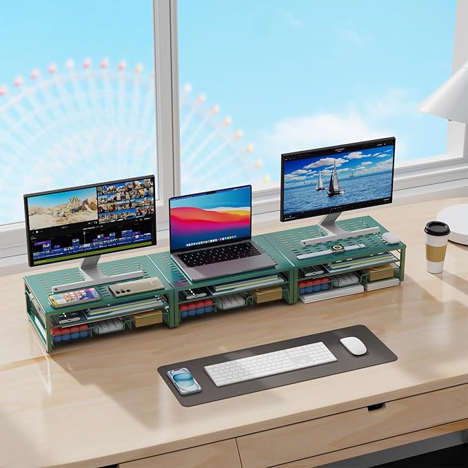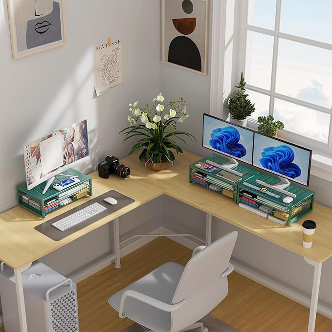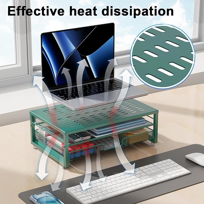 gianotter Computer Monitor Stand Riser, office organizer with Drawer, Office Organizers Storage for Classroom Office Supplies (Dark Green)