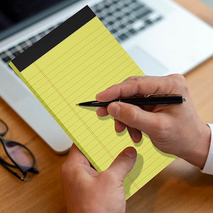 - Perfect for lists and professional notes, these 5x8 yellow legal pads are compact and convenient. The smaller size makes them ideal for on-the-go use and can easily fit into a small bag or briefcase.