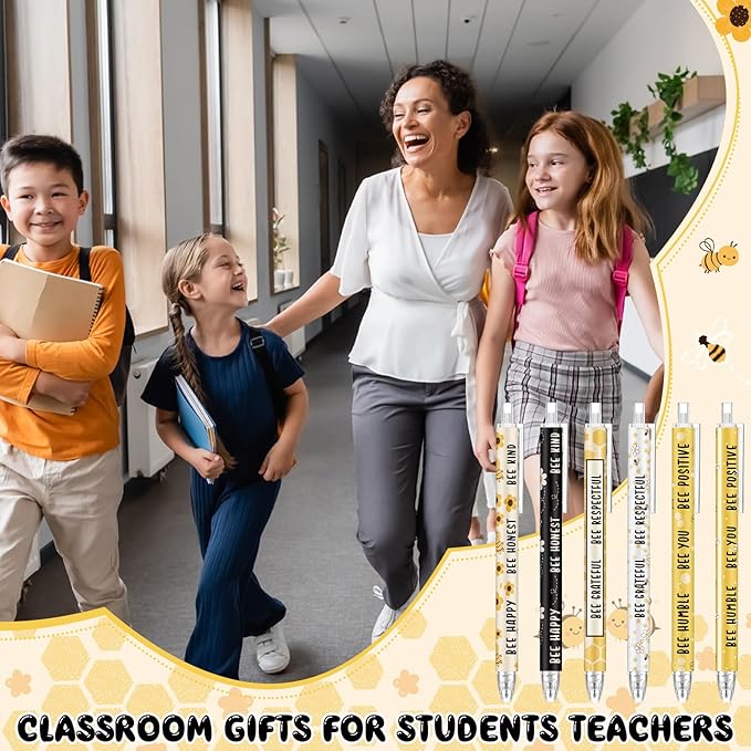 - Cute and Inspirational Gifts: our yellow bee pens are designed in 6 different styles, and each pen is printed with motivational statements and cute bee patterns, bright in colors, unique in styles, which will add a gloss to the desktop and pencil case