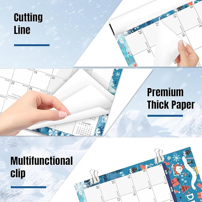 - ❄️【2 Binder Clips Design】In order to give the calendar more writing space and decorative function, we use loose-leaf binders, which is suitable for desktop calendars and can be safely hung on the wall to add a festive atmosphere.