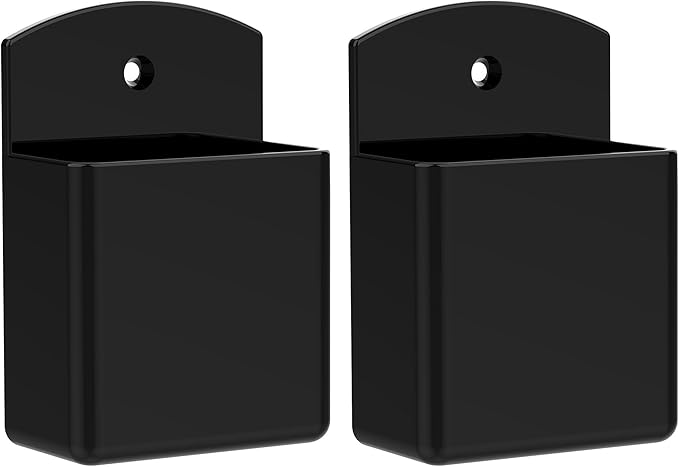 DRQ 2pc Adhesive Remote Control Holder, Wall Mount TV Controller Holder, TV Remote Organizer, Wall Pen Holder Desk Accessories Storage for Home Office School, Black