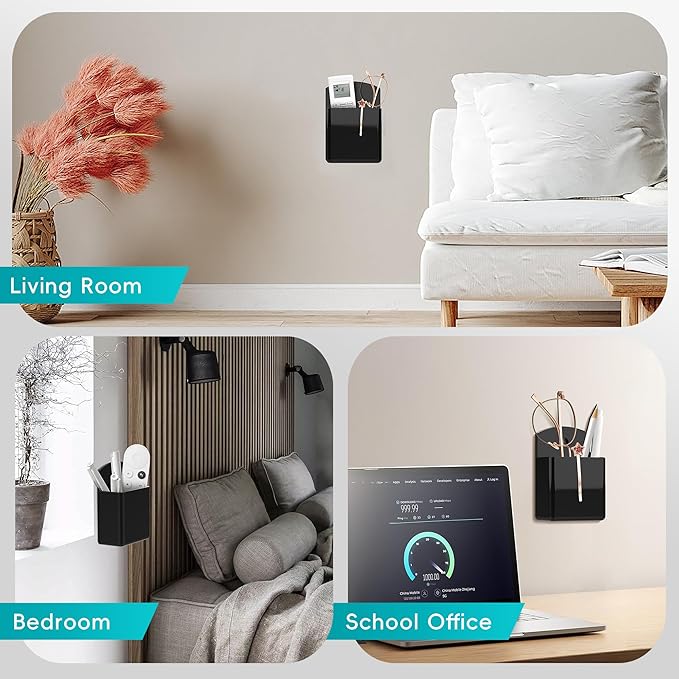 - [Wide Applications] You can also use this tv controller holder at home, office, fitness room, school, restaurant, a place you need to keep small items such as remote controls, pens, makeup brushes, glasses, toothbrushes, and scissors in place. Multi-functional remote holder wall mount provides you with a neat and tidy space.