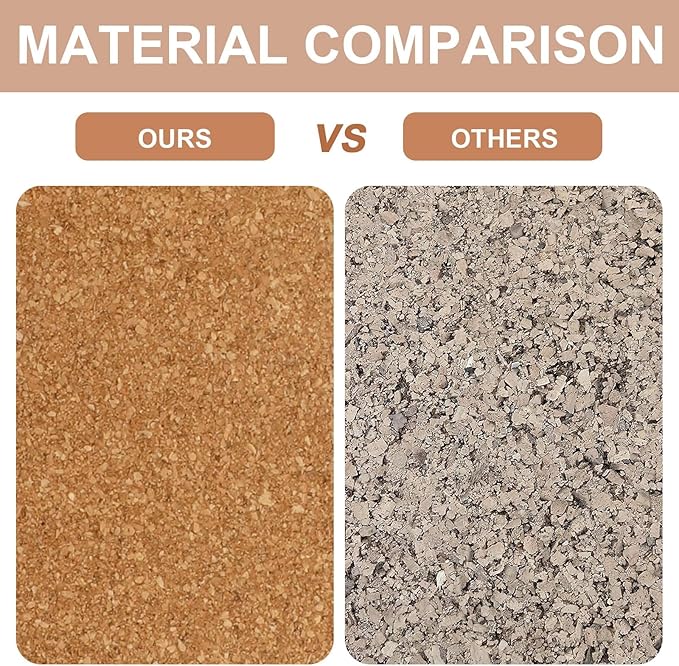 - Good-Quality Material: The cork boards for walls are made of good-quality natural rubber cork material, which is soft, light and has good durability, and can effectively absorb sound and reduce noise, adding tranquility to your living space. The thickness of cork strips bulletin bar strip is 0.4 inches, which can effectively avoid nails from penetrating and ensure that cork board strips will not be deformed or damaged after long-term use