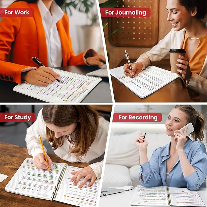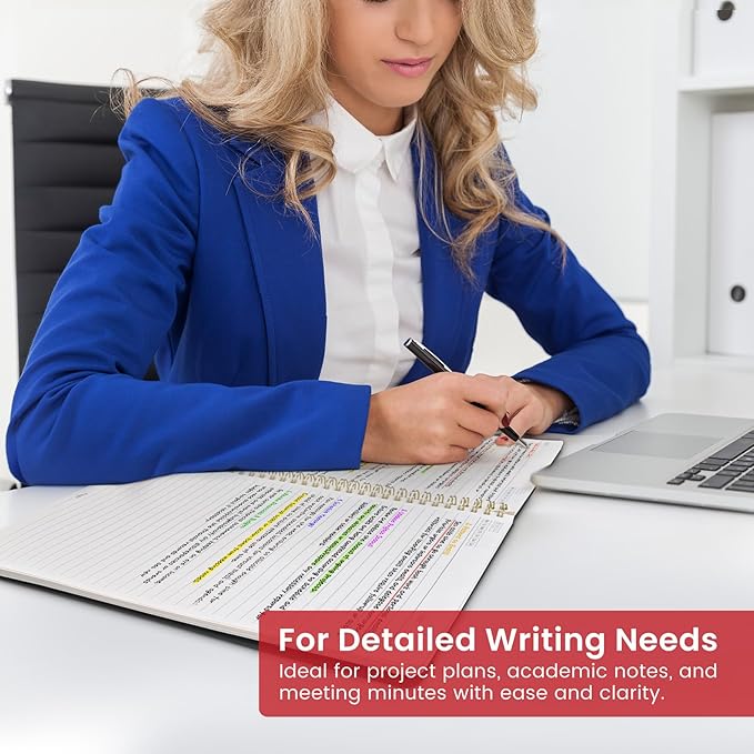 - Large A4 Spiral Notebook: Measuring 8.5" x 11" with standard 7mm college-ruled lines, this large A4 notebook offers ample space for detailed note-taking, journaling, and task management. Its spacious pages are perfect for capturing ideas, organizing thoughts, and managing projects—whether at work, school, or in your home office.