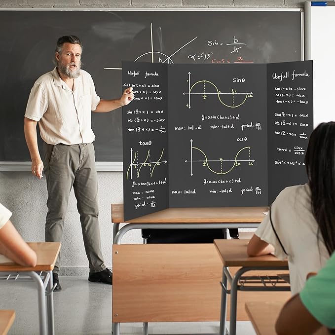 - Easy for Write: The tri-fold display board has a smooth black surface, and is suitable for a variety of writing instruments such as markers, chalk, watercolor paints, crayons, and paints