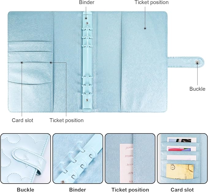 - Practical Design: A5 Notebook Binder features 4 card slots and 2 pockets for cash/passport/coupons/notes, etc.