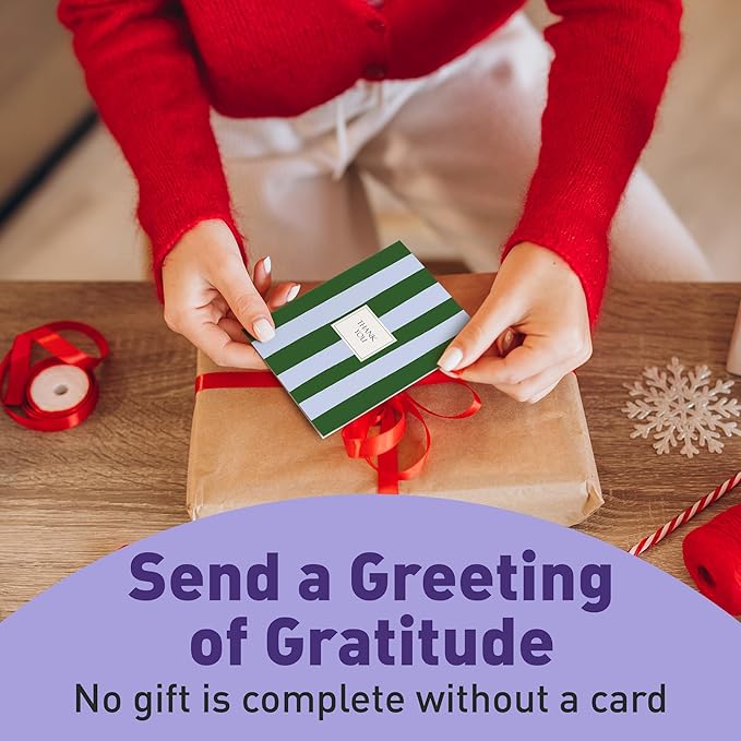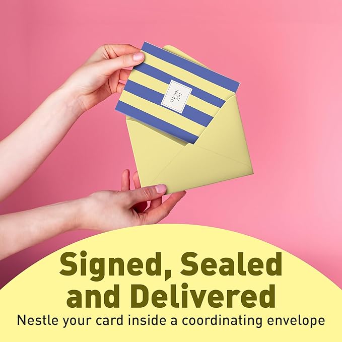 - Two-In-One Set — No more boring white envelopes. This thank you card pack of 24 introduces eye-catching pops of color from the moment they receive your thanks. These blank thank you cards with envelopes keep your stationery drawer fully-stocked for important events