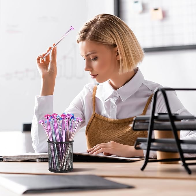 - Beautiful Design: each ballpoint pen is decorated on the pen top with a large rhinestone crystal diamond, and diamonds make the interpretation of love in a simple way, coupled with a stunning metallic finish and accents, makes your pen look more gorgeous and attractive