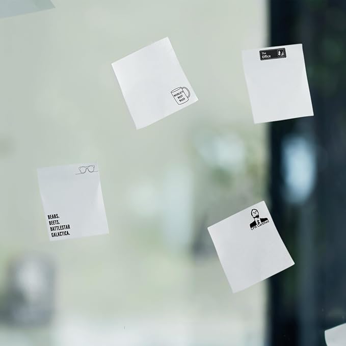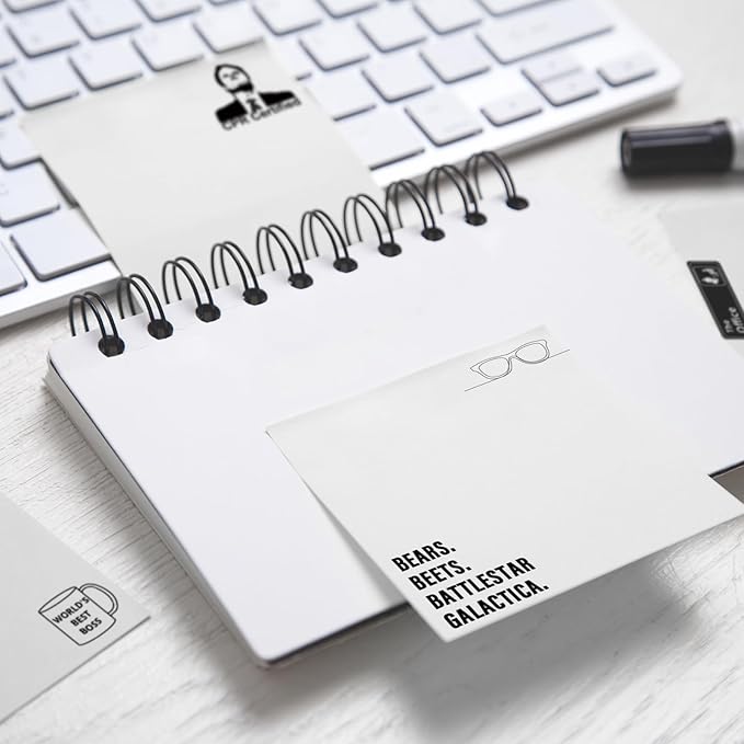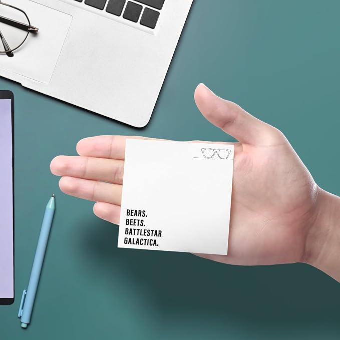 - BRING LAUGHTER: Make everyone laugh with a cute note using these novelty sticky notes with cheeky quotes like "Bears. Beets. Battlestar Galactica." These fun sticky notes are both fun and functional