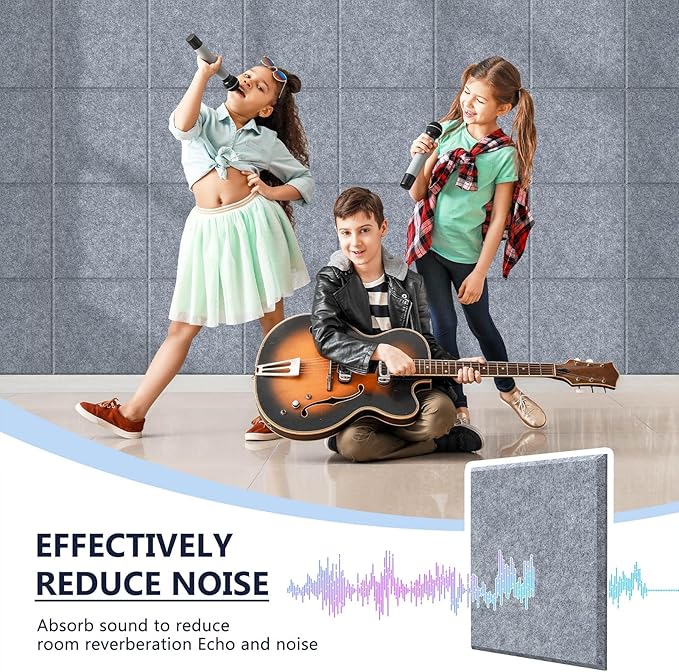 4 Pack Cork Board Tiles 12x12 Inches, 1/2" Thick Felt Cork Squares with 30 Push Pins, Bulletin Board Pin Board, Adhesive Cork Board for for Wall for Home, Office, and Kitchen (Gray)