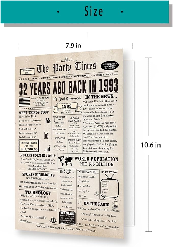 Vintage 32nd Birthday Gifts for Women Men, Happy 32nd Birthday Card for Son Daughter, Big 32 Year Old Birthday Card for Wife Husband