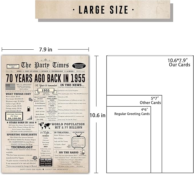 - This large 70th birthday card features a vintage newspaper design, showcasing important events, movies and sports events from 70 years ago.
