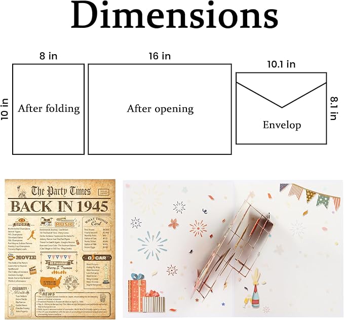 80th Birthday Card for Men Women, Funny 3D Pop Up 80th Birthday Gifts for Grandma Mom Dad, Back In 1945 Happy 80 Year Old Birthday Decorations Cards for Her Him, Classy Vintage