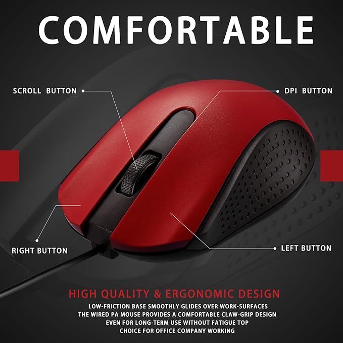 - Versatile for: designed with classic red and simple appearance, the mouse with USB are great for daily office work, home entertainment, travel work, study and more, and they are widely compatible with most PCs, computers, laptops and much more
