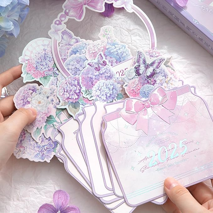 2025 Creative Desk Calendar Unique Flower Basket Shape New Year Schedule Calendar 8.5" x 6" - Hydrangea