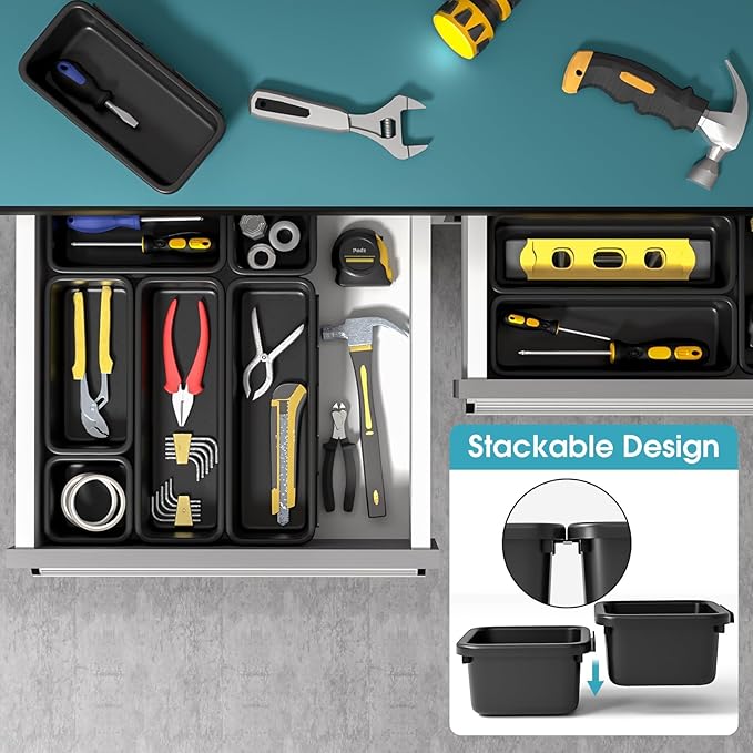 - Make Everything Organized: These versatile drawer divider trays fit different size drawers and areas, suitable for all kinds of drawers, such as dresser/bathroom/kitchen/office/craft room. Great for storing cosmetics, sewing supplies, accessories, jewelry, office supplies, tools and more