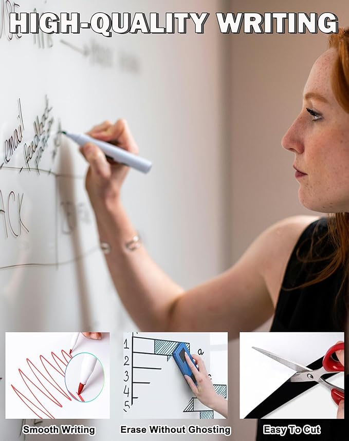 - Washable, Reusable, and Customizable Dry Erase Sheets: This white board paper is washable and reusable. If the adhesive backing gets dirty, simply wash it with water, let it dry and use it like new. The dry erase wallpaper can also be easily cut to fit custom spaces, making it ideal as dry erase sticker for wall or as a to-do list white board.
