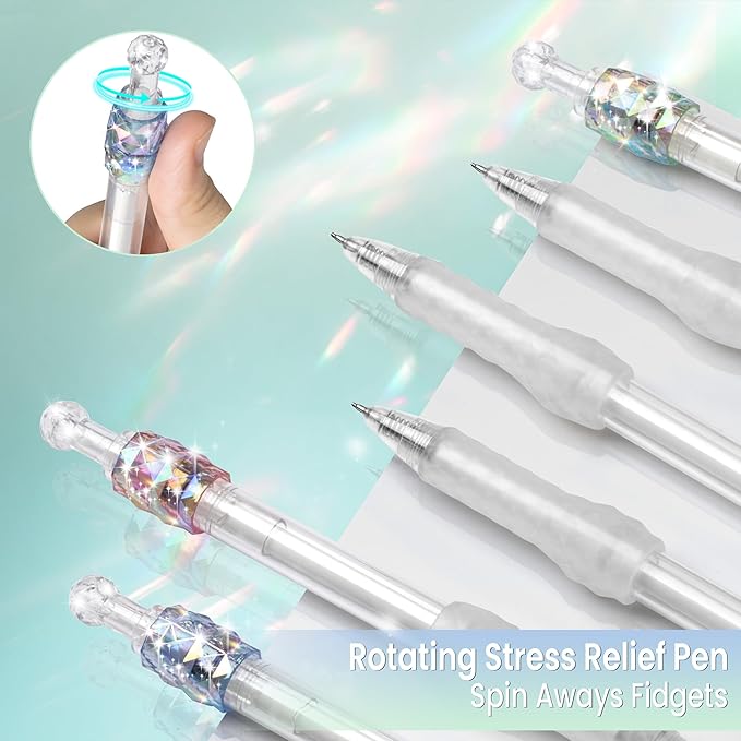 - Rotating Stress Relief Gel Pen: The pen body of the novel fingertip pen has a rotatable outer ring profile, just gently turn it with your fingertips, and you can easily make the pen ring rotate at high speed. It's fun and useful. A good spin to decompress. It is a de-stressing toy for learning and all occasions!!