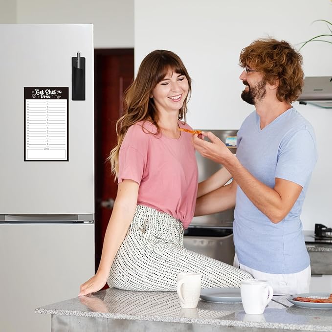 - 【with Pen Holder】The full-back magnet pen holder can be attached to the refrigerator or other metal surfaces, so you don't have to worry about looking for pens everywhere. The size is suitable for various commonly used pens, making it easy to track your lists and to-do items. (Pen/Pencil not included)