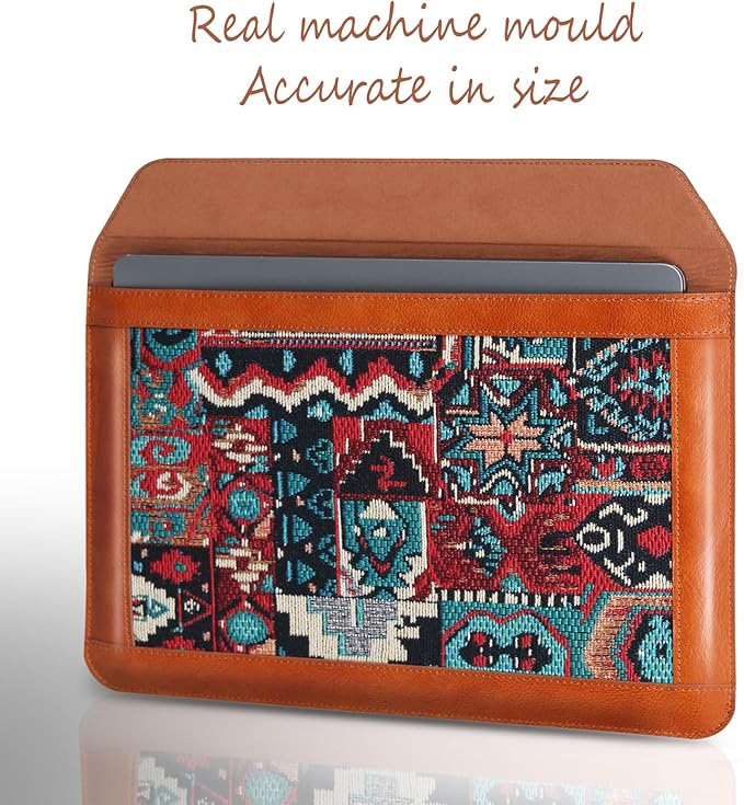 - [Material]-The Laptop Case Made of Jacquard cloth and leather, soft plush lining - anti-static, can effectively absorb shock, reduce damage caused by accidental collisions, and protect the notebook from scratches.