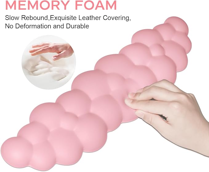 JIKIOU Upgrade Leather Cloud Keyboard Wrist Rest, Cloud Wrist Rest with Non-Slip PU Base, Comfortable Memory Foam Wrist Rest for Computer Laptop Mac Gaming Office and Pain Relief Wish Christmas Gift
