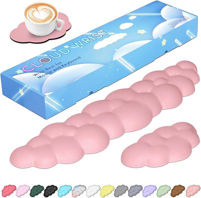 - ✔【Cute and Aesthetic Cloud】Included keyboard wrist, mouse rest and cup pad, and the cloud-shaped pad is very unique&good-looking and enhances the user's experience, designed for daily working or gaming
