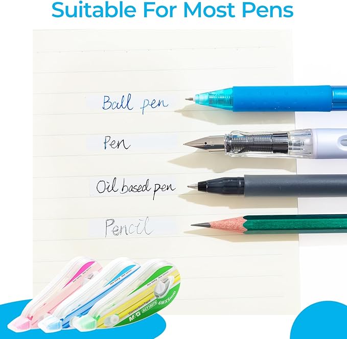 - 【Widely Applicable】: Our correction tape is engineered to be used with an array of pens. Writing with ballpoint pens, gel pens, oil based pens, pencils, you can easily make quick aesthetic corrections with our tape.