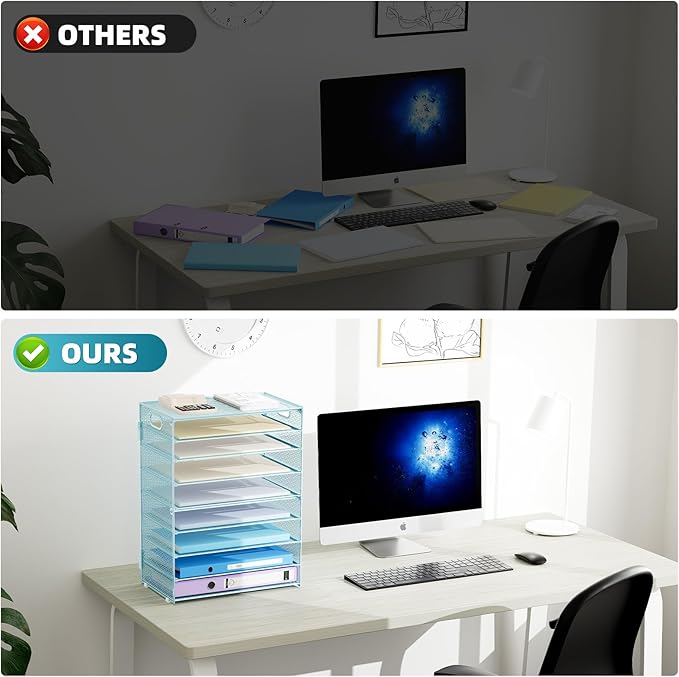 - 【PREMIUM QUALITY】The mesh desktop file organizer is made of lightweight durable metal mesh and reinforced with a solid steel frame that makes it have long-lasting strength and reliable performance.