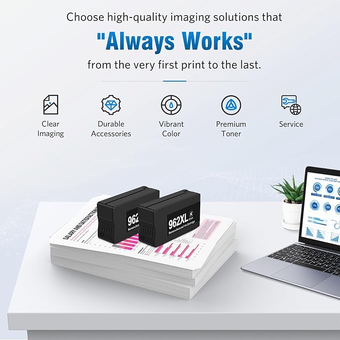 - Package Includes: 2 * Black 962XL Ink Cartridges (2 Black Packs); Advanced Patented Chip Version
