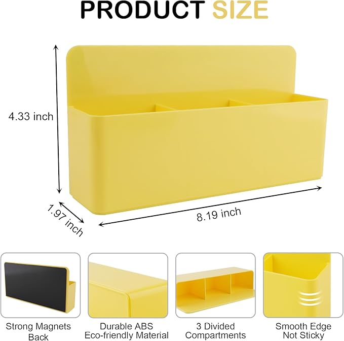 - Upgraded Magnetic Pen Holder:Magnetic marker holder adopts divider design,there are 2 divider.Magnetic dry erase marker holder's dimensions is 8.27L x 2.05W x 4.33H inches(Long Style),you can choose your storage Organizer of different sizes as you like.