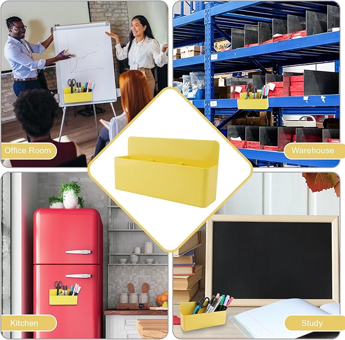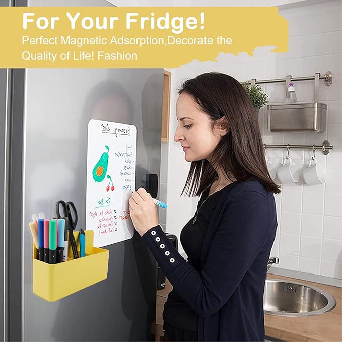 - Simple and Practical:Our magnetic pen holders are suitable for holding pens, pencils, dry erase markers, erasers, rulers, children's scissors and other office, home or school supplies. Also can be served for refrigerator, whiteboard, locker or other metal surfaces.Keep your stuff always organized!