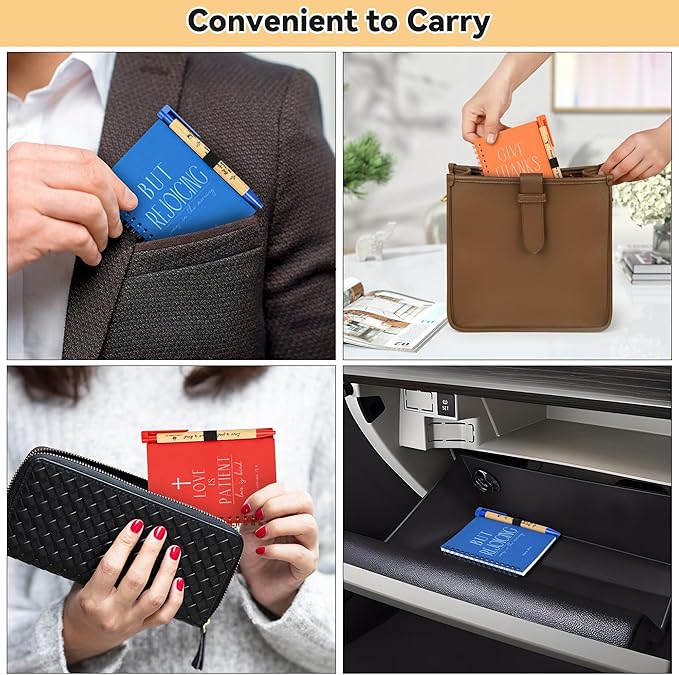 - Divinely Endowed Bundles: Receive 56 sets, each set consisting of a single-color christian notebook and a matching Christian pen. The notebook bears inspiring Bible verses on its facade. They come in 7 distinct hues, not merely symbolizing the diversity and oneness in faith but also making each set peculiar. Altogether, you'll receive 56 small notepad and 56 pens, 112 items to accompany your spiritual voyage. These sets are perfect for personal reflection, group meditation, or sharing with friends and family