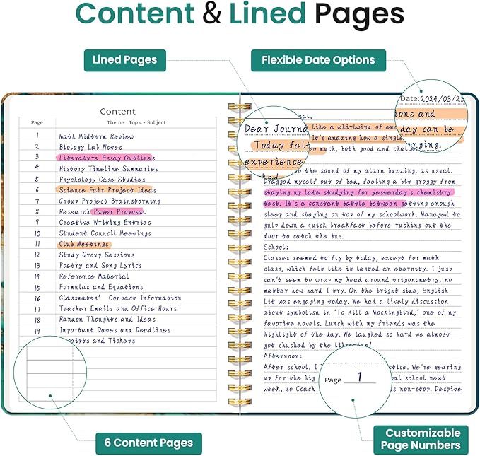 - Streamlined and Practical Design: Featuring 140 lined pages and a 6-page blank table of contents, our notebook provides generous room for note-taking and effortless referencing. An inner pocket safeguards miscellaneous items, while an elastic closure band ensures the notebook remains securely closed when not in use.