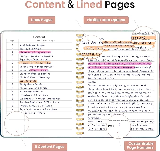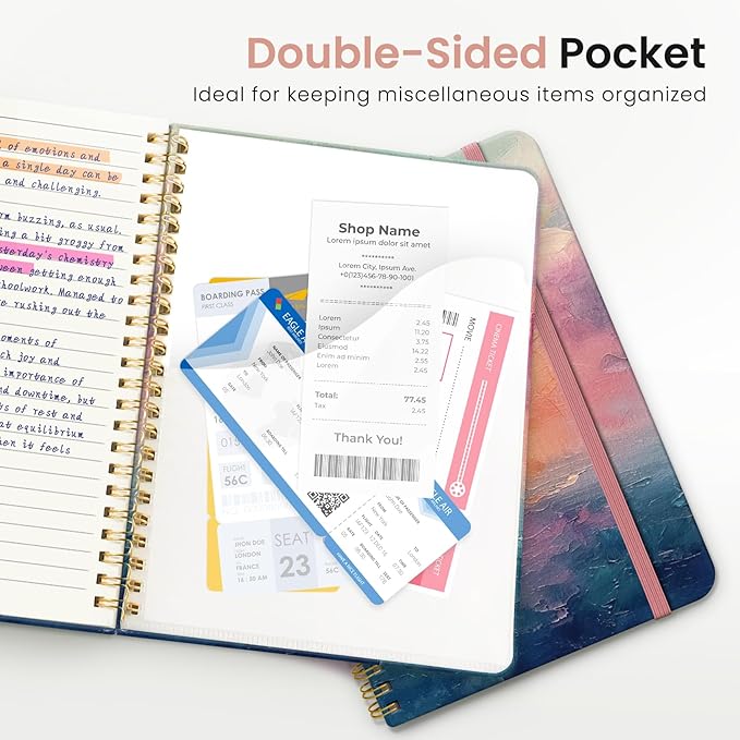 - Streamlined and Practical Design: Featuring 140 lined pages and a 6-page blank table of contents, our notebook provides generous room for note-taking and effortless referencing. An inner pocket safeguards miscellaneous items, while an elastic closure band ensures the notebook remains securely closed when not in use.