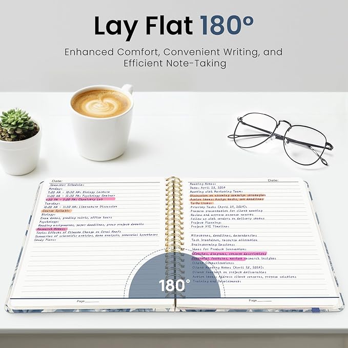 - Premium Paper Quality: Crafted from 100 GSM thick, ink-friendly paper, our notebook ensures minimal ink bleed-through and ghosting. It accommodates a variety of pens, from ballpoint to gel and fountain pens. Each page features a convenient day header for effortless date tracking.