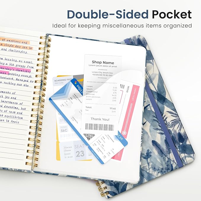 - Streamlined and Practical Design: Featuring 140 lined pages and a 6-page blank table of contents, our notebook provides generous room for note-taking and effortless referencing. An inner pocket safeguards miscellaneous items, while an elastic closure band ensures the notebook remains securely closed when not in use.