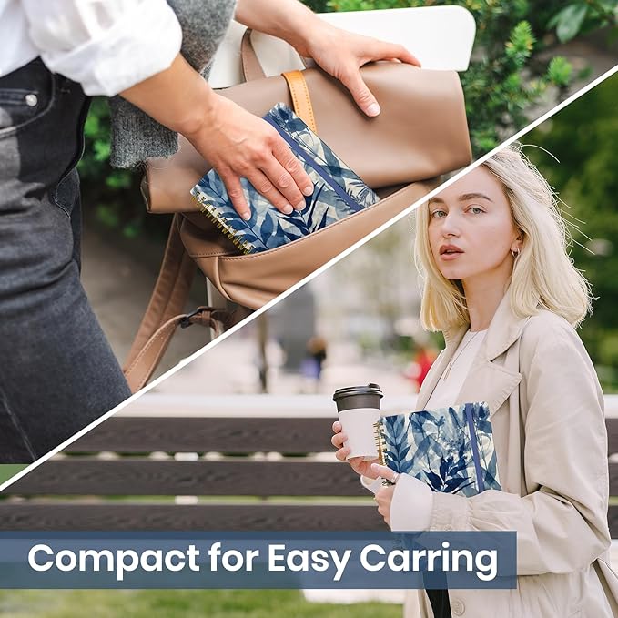 Lined Spiral Journal Notebook for Women, A5 College Ruled Journals for Writing, Hardcover Notebooks for Work, Note taking and Office School Supplies,140 Pages - Blue Leaves